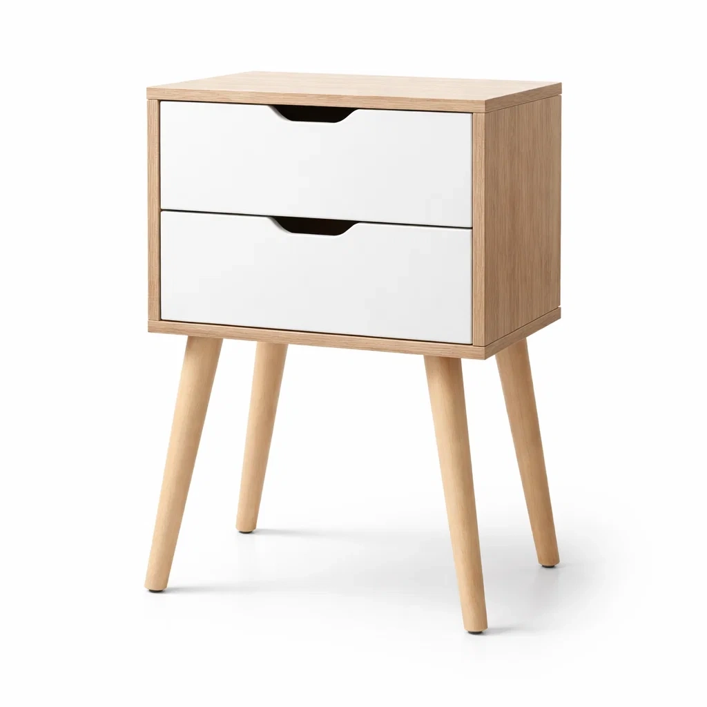 Nachttisch aus MDF Weiß und Eichenholz mit Schubladen