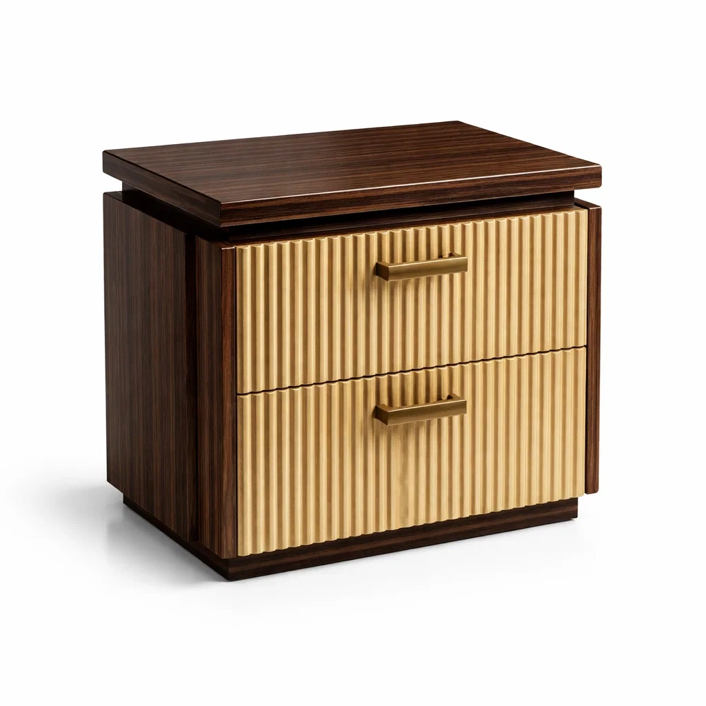 Nachttisch aus Holzfurnier Grau Braun mit zwei Schubladen