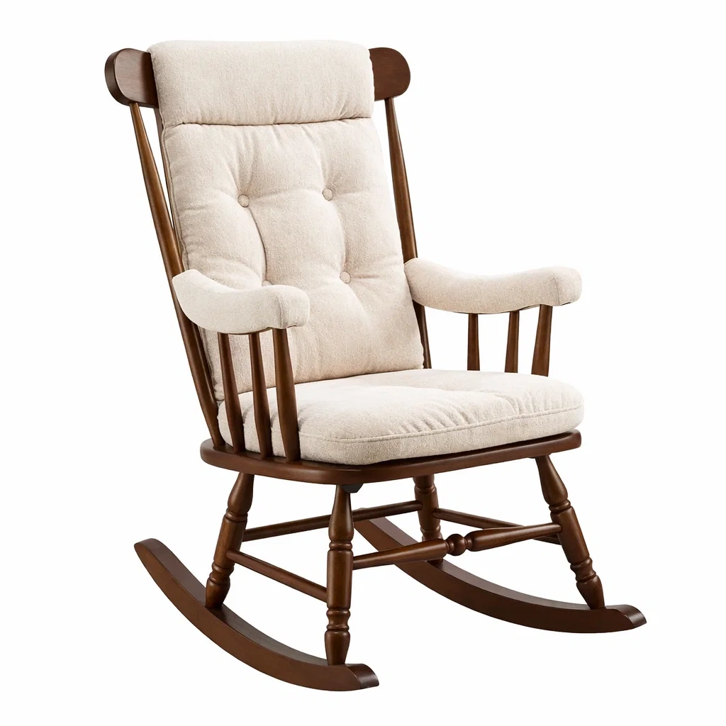 Schaukelstuhl aus Holz mit Leinenpolster Beige
