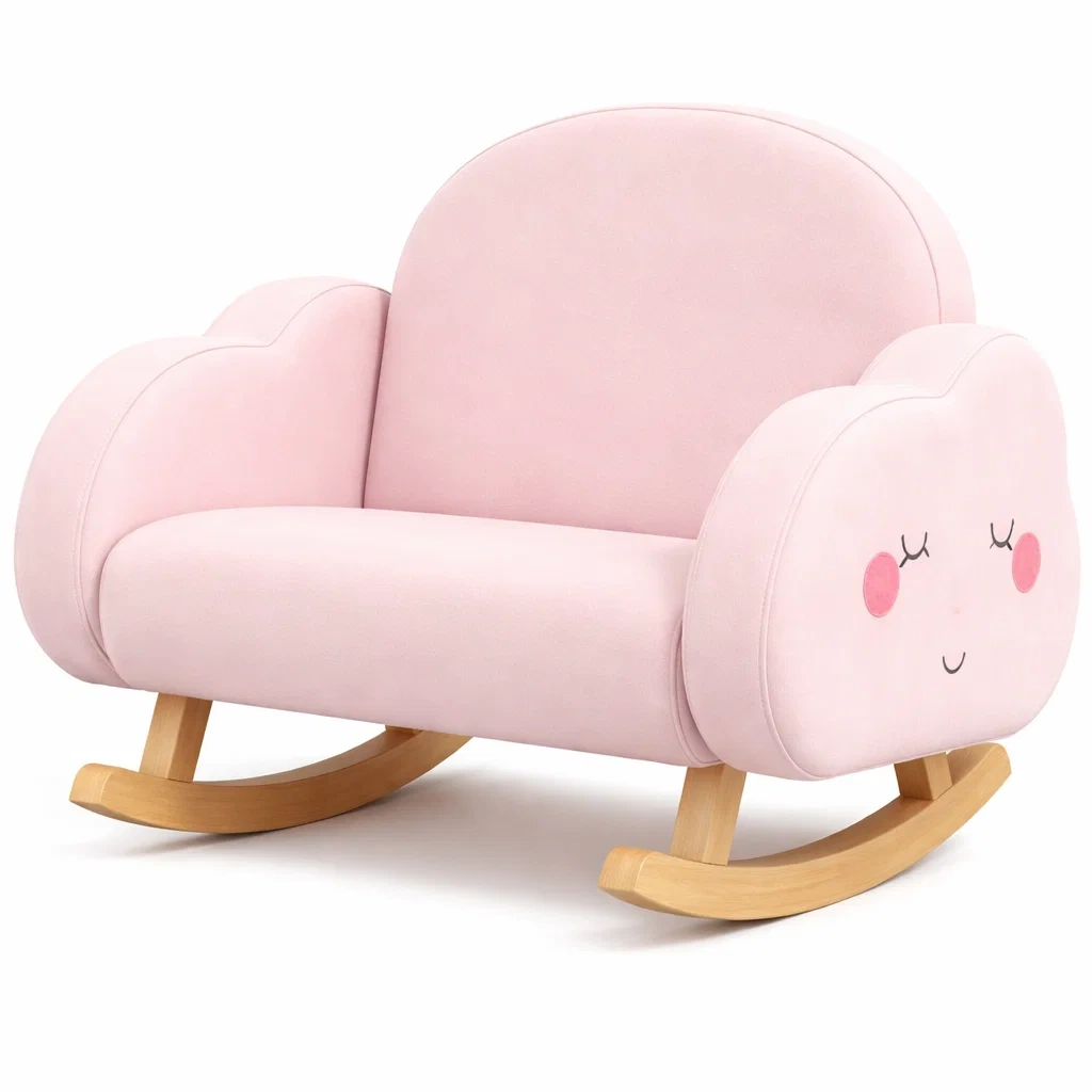 Schaukelstuhl für Kinder aus Holzgestell mit Polyester Rosa