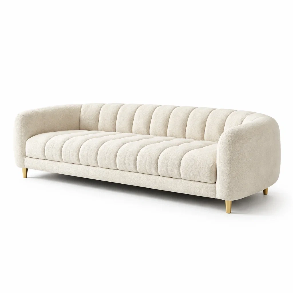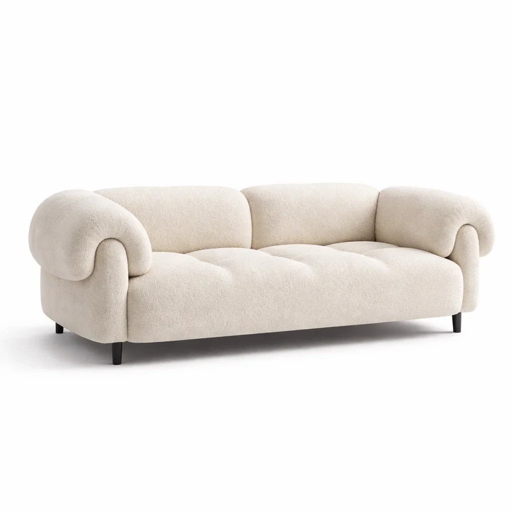 Sofa aus Holz mit Bouclé Stoff Creme Dreisitzer