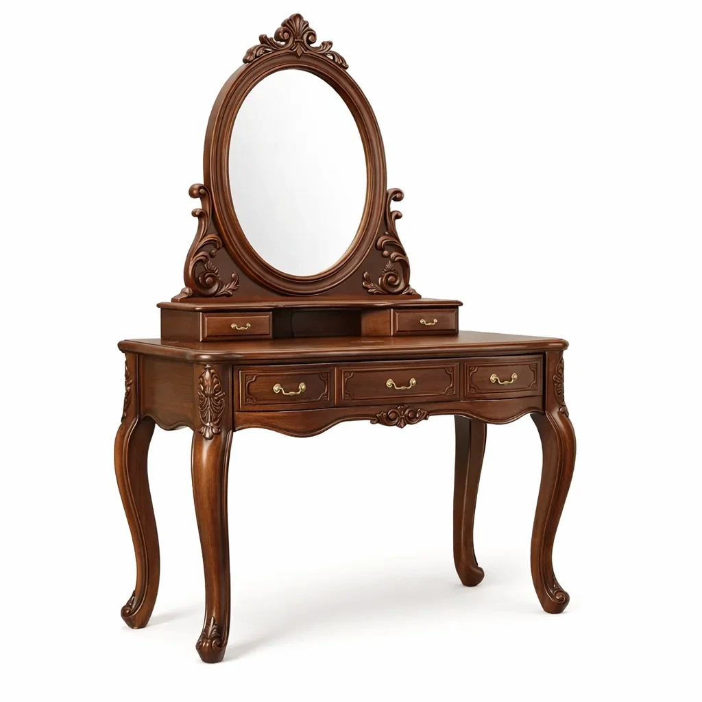 Der Schminktisch besteht aus hochwertigem Eichenholz.